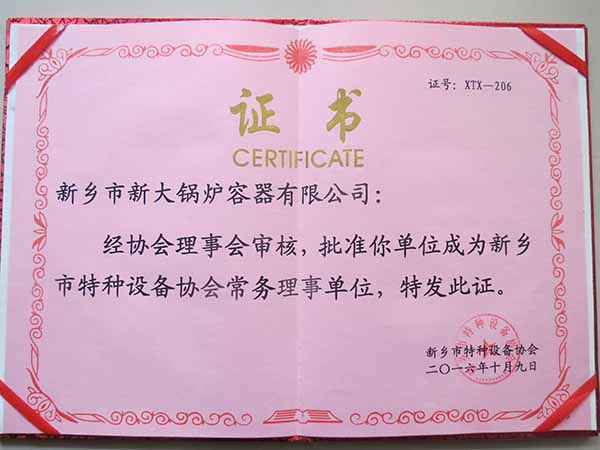 恭喜新鄉(xiāng)市新大鍋爐容器有限公司成為新興市特種設備協(xié)會常務理事單位